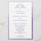 Elegant purple Wedding program with beautiful hand drawn monogram and watercolor frame in purple hues. Modern hand written calligraphy elements. Ability to make text changes and adjustments by selecting "Edit using design tool". Front with wedding ceremony details, back with wedding party names and thank you message for your guests. Part of our "Lavender Watercolor, Botanical Monogram Wedding" Collection with a variety of coordinating products available. Visit the entire collection with this link: https://www.zazzle.com/collections/lavender_watercolor_botanical_monogram_wedding-119337531503251435