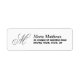 Elegant return address label featuring a gray monogram initial. Customizable name and address.