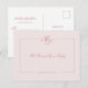 Elegant Monogram Rose Blush Script Wedding Reply Invitation Postcard