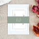 Elegant sage green botanical monogram wreath invitation belly band.