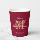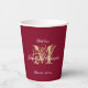 Elegant monogram classic script personalised couple's names in beautiful burgundy red and gold wedding paper cups. Click personalise this