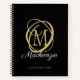 Elegant, modern notebook or journal personalised with a decorative monogram or initial in gold with a first name or family name in a calligraphy handwritten script style in white against an editable black background. CHANGES: Change the background colour or text font style, colour, size and placement by clicking on CUSTOMIZE FURTHER under the PERSONALIZE section. Contact the designer via Zazzle Chat or makeitaboutyoustore@gmail.com if you'd like this design modified, on another product or would like coordinating items.