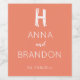 Elegant, minimal, Coral, peach and white Initial Wine labels. Modern Wedding, monogram, script design. For bride and groom. You can change edit the design with names, initial and date.