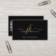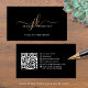 Elegant Monogram Script QR Code Social Media Business Card. Modern, stylish professional business card with elegant script monogram initials with your QR Code and social media icons on the back. CHANGES: Change the text font style, colour, size and placement and/or the background colour in EDIT (the sample shows black, gold and white). ASSISTANCE: For help with design modification, transferring the design to another product or if you would like coordinating items, contact the designer BEFORE ORDERING via the Zazzle Chat MESSAGE tab or email makeitaboutyoustore@gmail.com.