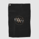 Simple elegant black gold and white script monogram golf towel. You can personalise the name, monogram and customise the font and colours to create your own unique design. Designed by Thisisnotme©