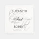 Elegant Monogram SImple White Wedding Napkins. The modern classic design features fancy swirls and whimsical flourishes with gorgeous elegant calligraphy. Personalise the napkins with the names of the bride and groom. These napkins can be used for the wedding reception, rehearsal dinner, engagement party and more!
