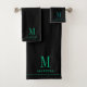 Elegant Monogram Teal Name Black Bath Towel Set