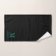 Personalised elegant monogram teal name bathroom towel set teal borders on black. Refresh your bathroom decor with a minimalist typographic style.