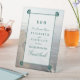 This pedestal sign is perfect for any couple planning a romantic marriage by the sea. The design features a dark teal green boarder with matching scallop motif corners on a sandy beach scene background. The simple design can be personalised to suit your special event and will be the perfect table sign for any beach themed party, including; bridal showers, engagements, wedding showers, birthday parties and much, much more.