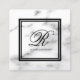 Elegant monogram template white marble stone square business card