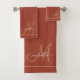 Elegant Monogram Terracotta Gold Script Name Bath Towel Set
