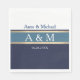 Modern and classy monogrammed design, with blue large stripes, custom names and special date.