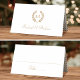 Elegant seating place cards featuring a simple laurel wreath framing the couple's initials, with a matching leaf pattern on the inside. Inspired by 1920s invitations, it blends classic formality with modern flair, using a traditional serif font, vintage calligraphy script and a clean arrangement. Personalised with the couple's names and monogram, the template also provides space for you to handwrite the table number and guest's name. You can also customise the background colour using the design editor tool. Perfect for wedding receptions, rehearsal dinners, anniversaries, birthdays and special events. Printed colours: gold and white. Shop the collection for matching stationery and supplies for sale online!