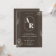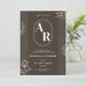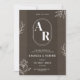 Announce your special day in style with this elegant monogram wedding invitation featuring a modern minimalist design. A bold custom initials emblem takes centre stage, framed by delicate white floral line art on a rich earthy brown background. Perfect for couples seeking a sophisticated, clean, and contemporary look for their wedding stationery.