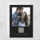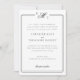 The invitation is printed on a luxurious, heavyweight cardstock in a pristine shade of white or ivory, providing a perfect backdrop for the bold, black design elements. At the top centre of the invitation, a beautifully crafted monogram takes centre stage. The monogram features the couple's initials intricately intertwined in an elegant script or calligraphic font, creating a sense of unity and sophistication. A thin, precisely defined black frame borders the edges of the invitation, creating a clean and polished look. On the back there is space for a photo as well as a QR code