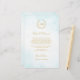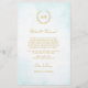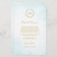 This elegant timeless classic wedding design combines classic laurel wreath enclosing Bride’s and Groom’s monograms and a light turquoise watercolor ombre. Gold lettering (gold is not real gold but colour). Elegant font combo.