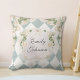 Elegant Monogram White Roses Green Leaves Diamond Cushion