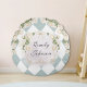 Introducing our Elegant Monogram White Roses Green Leaves Diamond Round Pillow. A pretty blooms add nature vibes to your desk. Suitable for as a gift for baby girls.