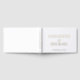 Elegant white wedding guest book featuring the names of the bride and groom in large classic serif typography, monogrammed in your choice of real gold, silver or rose gold foil, and your wedding date. Personalise additional text on the spine.