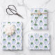 This gift wrap design features my original watercolor ginger jar illustration (a blue and white ginger jar decorated with a green bow). On the front of each ginger jar is a monogram initial. This can be different on each of the 3 sheets so that the monogram corresponds to the first initial of the recipient. You could also set the initial to be the first initial of your family surname.