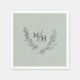 Elegant Monogram Laurel Wreath Sage Green Wedding Napkins... Our botanical wedding napkin features an elegant leafy laurel wreath displaying the bride's and groom's initials in romantic serif typography on a trendy sage green background. All text can be easily revised on the personalisation template.