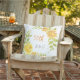 Elegant Monogram Yellow Flower Wreath Wedding 50th Cushion