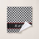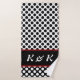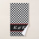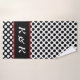An elegant monogrammed, black and white, polka dot pattern decorates the bath towels. To colour personalise the wedding gift for newlyweds, modify the fill colour and the initials. Additional adjustments are to complete the initials to a full name, change the font, font colour, or font size. Please remember to adjust the shape coloration too. For help with colour and design customisation, contact https://t.me/KBMD3signs_chat.