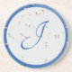Design features an elegant blue background to the shape displaying monogram of couple's last name elegantly in centre in a blue lettering. The appearance of falling rice overlays the design. Designed to accompany the "Blue and Grey Marble Wedding Suite."