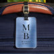 Elegant Monogrammed Blue Brushed Metallic Luggage Tag