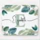 Elegant Monogrammed Eucalyptus Greenery Watercolor Mouse Pad