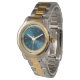 Elegant Monogrammed Gold Blue Metallic. This elegant and modern watch is designed with name script typography paired with white typography in gold on a chic Gold Blue Brushed Metallic background and has space for you to write your name, The monogram name can easily be personalised to make a design as unique, the perfect cute gold gift for men, it's good as a gift for friends, brother, fathers, and husband