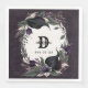 Keywords: elegant monogrammed wedding napkins, gothic wedding décor, dark and bright purple florals, personalised wedding napkins, chic wedding tableware, unique wedding reception, monogram napkins, custom wedding details, sophisticated wedding décor, elegant floral design, special occasion napkins.