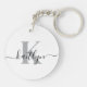 This simple, elegant keychain with your first name in a trendy script font in black and your first initial in a modern cap font in grey is perfect for your keys. It's stylish and modern and yet very classic.