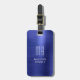 Elegant Monogrammed Navy Blue Brushed Metallic Luggage Tag