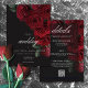 THIS IS AN ALL IN ONE INVITATION, WITH RECEPTION AND ADDITIONAL DETAILS ON THE BACK. Embrace timeless elegance for your gothic-inspired celebration with our captivating wedding invitation. A soft black background provides the perfect canvas for a captivating, yet understated bouquet. Imagine a corner arrangement of muted blood red rose blooms, where rich red hues mingle with dark green foliage. This ethereal design exudes quiet sophistication, perfect for the bride-to-be seeking a touch of romantic darkness. Your details are showcased in a modern font, ensuring they stand out beautifully. This enchanting design creates a truly unforgettable invitation for your special event, setting the tone for a moody and elegant celebration of love. Created by Simply Farmhouse Press.