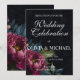 Elegant moody dark pink watercolor floral Wedding Invitation