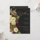 Elevate your wedding stationery with this dark and moody floral wedding invitation, designed for couples who love timeless elegance with a dramatic edge. Set against a soft black background, the design features lush vintage-inspired floral bouquets in cream, white, burgundy, yellow, rose pink, and orange tones—evoking a romantic, old-world botanical charm. The classic serif font in a buttery cream colour adds sophistication and readability, creating the perfect balance of tradition and modern style. Ideal for autumn weddings, evening ceremonies, or any event with a rich, romantic aesthetic, this invitation is a stunning first impression your guests will treasure. Created by Simply Farmhouse Press.