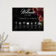 Embrace timeless elegance for your gothic-inspired celebration with our captivating wedding order of events poster sign. A soft black background provides the perfect canvas for a captivating, yet understated bouquet. Imagine a corner arrangement of muted rose blooms, where soft rust blush and rich burgundy hues mingle with dark green foliage. This ethereal design exudes quiet sophistication, perfect for the couple seeking a touch of romantic darkness. Your wedding details are showcased in a modern font, ensuring they stand out beautifully. This enchanting design creates a truly unforgettable invitation for your special day, setting the tone for a moody and elegant celebration of love. Created by Simply Farmhouse Press.