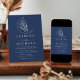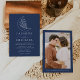 Introducing the Elegant Botanical Moon and Stars navy photo wedding invitation, a harmonious blend of celestial beauty and natural elegance. This modern wedding invitation features a delicate white line art illustration of a moon, adorned with twinkling stars and lush botanical foliage, all set against a navy background. The design is enhanced with subtle modern calligraphy, adding a touch of sophistication and contemporary flair. The invitation reverses to showcase your vertical engagement photo with your wedding website displayed below. Perfect for couples who dream of a wedding that is both timeless and enchanting, this navy wedding invitation beautifully captures the magic of your special day.