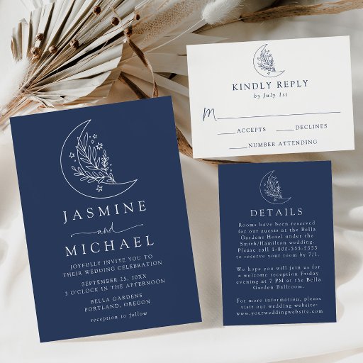 Elegant Botanical Moon and Stars Navy WeddingDesigned by Jessica Letterman