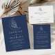 Designed to coordinate with our Elegant Botanical Moon and Stars wedding collection, this boho wedding details card features a white line art illustration of a moon adorned with stars and foliage on a navy background. Personalise the navy wedding details card with important information such as hotel accommodations, transportation, reception details, wedding website, and more!
