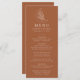 Designed to coordinate with our Elegant Botanical Moon and Stars wedding collection, this boho wedding menu features a cream line art illustration of a moon adorned with stars and foliage set against a terracotta background. Personalise the moon wedding menu with your names, wedding date, and curated menu offerings.