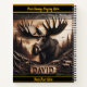An intricate dark wood carving displays a proud moose, showcasing artistry and nature's beauty, surrounded by forest elements and a named plaque.