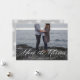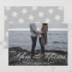 This modern maternity holiday photo card features white calligraphy script over a full-bleed photo. This design accommodates a single, horizontal photo on the front of the card. The greeting on the front says "More the Merrier". On the reverse side you will find a pretty grey and white snowflake pattern which can be removed or changed. You can also add another photo or text to the back by selecting the "customise further" option.