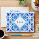 Elegant Moroccan Blue Pattern Initials Wedding Envelope