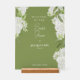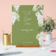 Moss Green background White Hydrangea Bridal Shower acrylic welcome sign. White typography. Modern Design and font. Elegant.