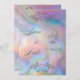 Elegant Mother-of-Pearl, colourful Save the Date Invitation with intricate flourishes. The mother-of-pearl background shimmers with colourful hues, adding a touch of iridescent elegance. Fully monogrammed in sophisticated grey script, allowing you to customise the details as you prefer.