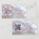 This elegant luxury business card features an iridescent lily mother-of-pear design and an elegant handwritten script. On the reverse side is a scannable qr code and a custom template for name, address and socials. This professional glam business card is perfect for salon, make up artists, jewellery and more.
