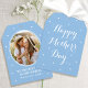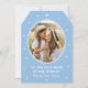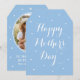 Make your Mom feel extra special this Mother's Day with a personalized greetings card! This unique tag-shaped card features "Happy Mother's Day" in elegant script typography, sweet little love hearts, and a favorite photo within an oval-shaped frame. You can personalize the text with your own special message and the sender's name. This pretty card can be attached with a ribbon to a gift or a bouquet of flowers. It's available with your choice of a matte or glossy finish. Template colors: blue and white.