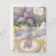 This elegant invitation features a vintage tea service with holiday gold and spring purple lilac flower accents. Use this template for your special high tea or tea party needs. AI-generated watercolor illustrated artwork with design direction by Susang6.